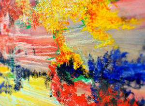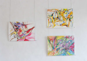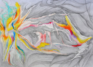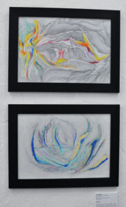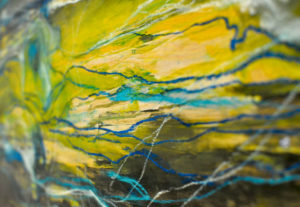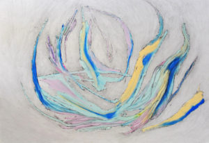 These paintings proclaim that the ripple effect does not always happen according to an obvious sequence of events. Often, we see consequences of random actions that happened spontaneously and unconsciously but brought about significant changes to life experience. These abstract works completed by layering paint, soft pastels, glue and varnishes represent chaos that led to an expression of freedom and fluidity.