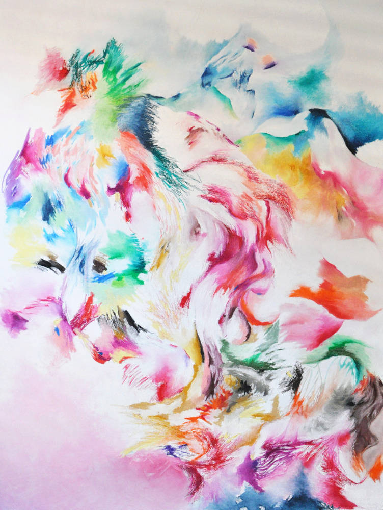 What is happiness? It’s a momentary feeling that one can capture in a state between a feeling of responsibility, pressure, commitment and the sudden satisfaction of completed work. This painting is a symbol of thousands of such ephemeral feelings that were awaited and directed into the canvas. The only goal of this art work was to be filled with such happy moments with no room for doubt, dissatisfaction or being lost. Happiness is indeed quite simple when it happens, but to make it happen it is really hard, because I think happiness comes when all levels of human physical and psychological states synchronize in a beautiful dance.